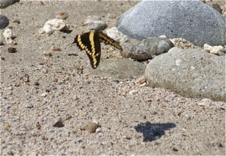 Then I noticed a butterfly coming down the beach. This one was big and appeared dark as it was coming at me from the sun. I got some nice shots of it. Check out the shadows on the rocks….so cool!